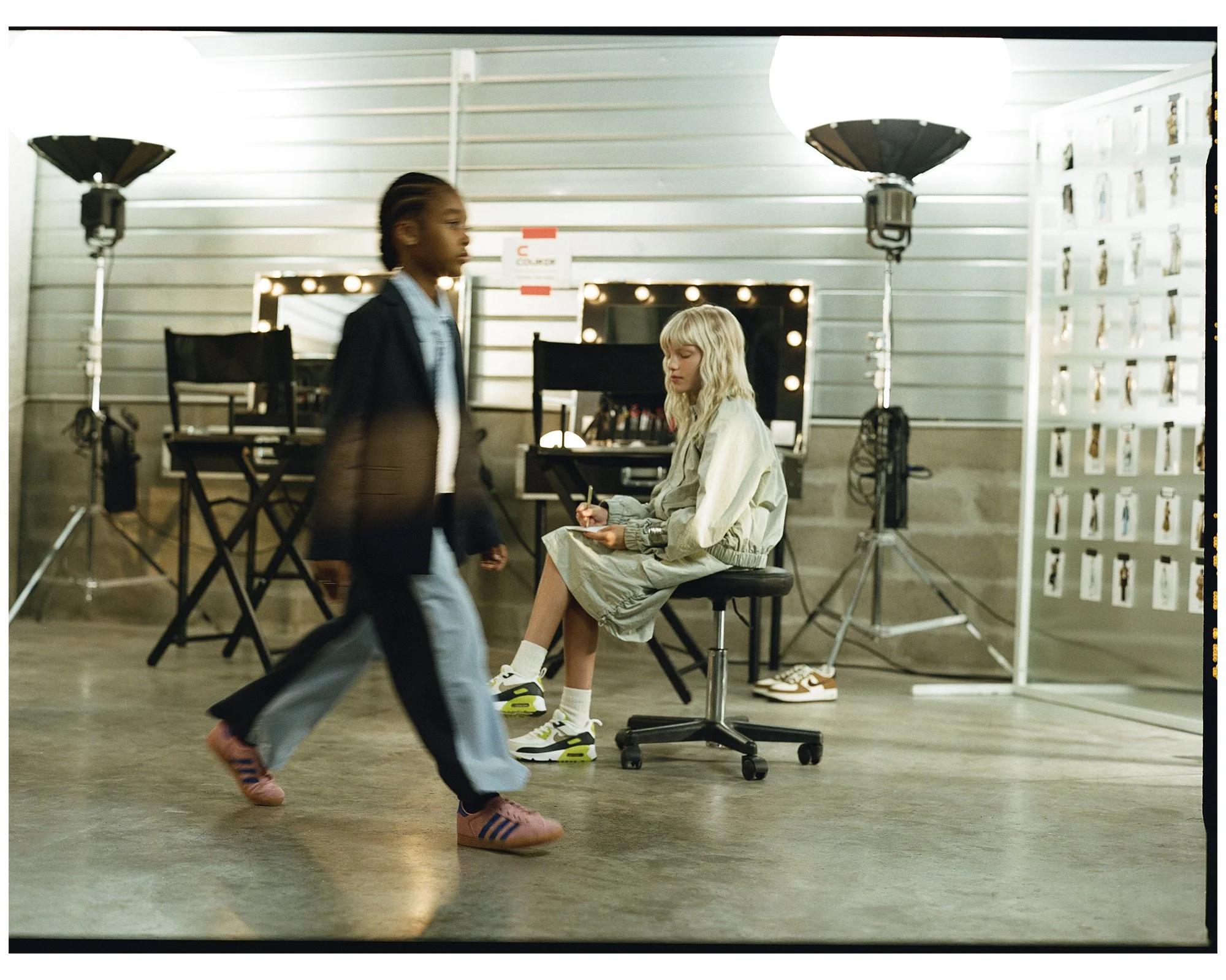 Le souhait était la rencontre entre la mode et le running. Être en studio donne le cadre « édito mode » de la campagne, plutôt que d’illustrer littéralement le running en extérieur. Le tapis roulant devient la signature visuelle qui évoque la pratique du sport sous un air de catwalk. Le film alterne mouvements, pauses et interactions pour créer un rythme vivant et fluide.