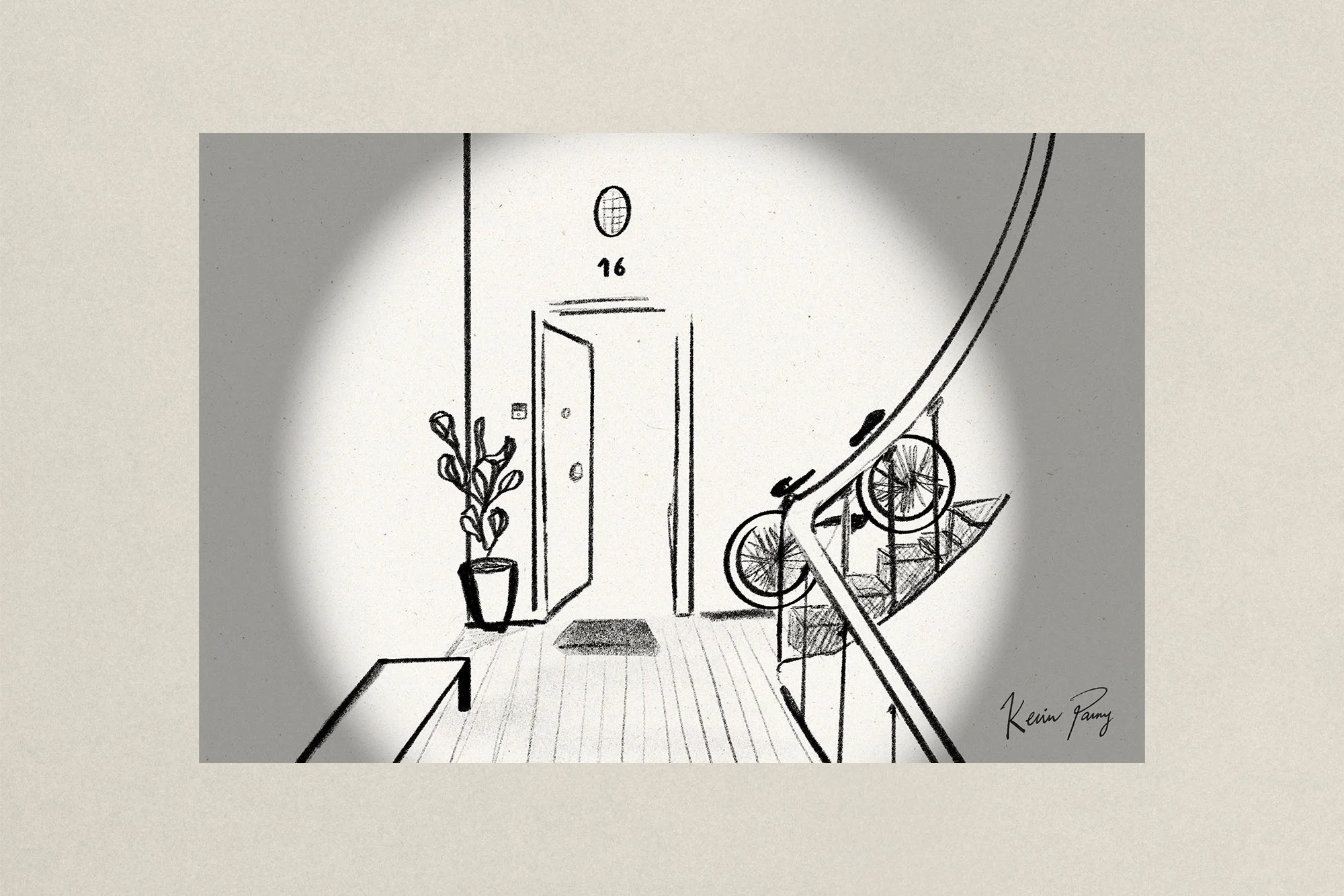 C’est ce moment de solitude face à soit même que regarde le spectateur à travers l’oeil de boeuf de sa porte. Celui-ci devient le témoin caché de ces instants.